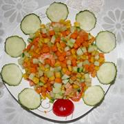 玉米、黄瓜、胡萝卜、虾仁、葱、姜、盐、糖、料酒。
