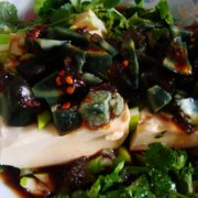 皮蛋、嫩豆腐、香菜、葱花、生抽、醋、辣椒油、麻油。