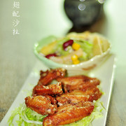 鸡翅、大蒜、紫甘蓝、包菜、生菜、玉米笋、婆罗门参、红腰豆、玉米粒、油、盐、鸡粉、加饭酒、蚝油、丘比日式沙拉汁、五香粉。