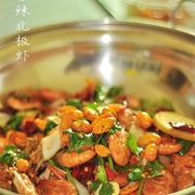北极虾、香菜、青尖椒、红尖椒、干辣椒、葱、姜、蒜、玉米淀粉、麻辣花生。