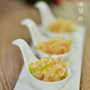 水发海蜇丝、自制川味红油、酱油、宁化府香醋、油泼辣子。