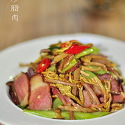 腊肉、鲜蕨菜、西芹、红椒、葱姜末、生抽、鸡精、鲍鱼汁、白胡椒粉。
