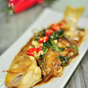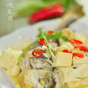 大黄花鱼、北豆腐、红椒、葱姜蒜、盐、白胡椒粉、鸡粉。