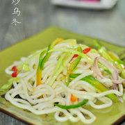 乌冬面、青椒、红椒、洋葱、葱姜末、盐、美极鲜、白胡椒粉、鸡粉。