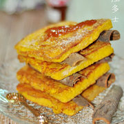 切片吐司、鸡蛋、肉桂粉、杏酱、黄油、白糖。