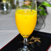 100%浓缩芒果汁、牛奶、蜂蜜、冰块。