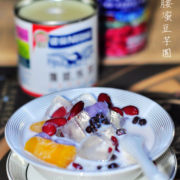 紫薯、黄心红薯、牛奶、木薯粉、白凉粉、蜜豆、红腰豆、雀巢炼奶。
