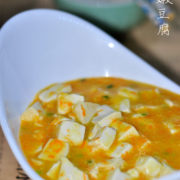 嫩豆腐、胡萝卜、咸蛋黄、小葱、生姜、盐、白糖、白胡椒粉、米酒、水、玉米淀粉、香油。