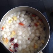 糯米粉、醪糟、各色水果、葡萄干、枸杞、红枣。
