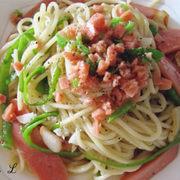 意大利面、青椒、大蒜、火腿。