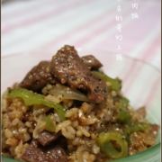 牛肉、凉米饭、青尖椒、圆葱、黑胡椒酱、黑胡椒碎、淀粉、盐、植物油。