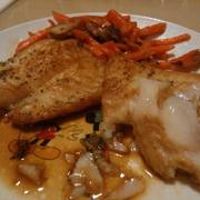 龙利鱼、胡萝卜、橄榄油、红烧汁、罗勒叶。