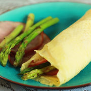 鸡蛋、芦笋、火腿片、萨米肠片、盐、糖。