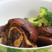 猪肘子、冰糖、生抽、八角、丁香、桂皮、香叶、料酒、老抽。