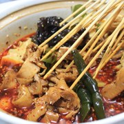 手枪腿、土豆、鸡爪、鸡胗、花椰菜、海带结、豆腐皮、藤椒、辣椒面、生姜、大葱、冰糖、橄榄油、料酒。