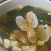 蚬、菠菜、豆腐、味噌粉、生粉。