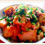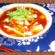 老豆腐、生淀粉、泡椒、泡姜、辣椒酱、水淀粉、葱花。