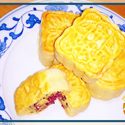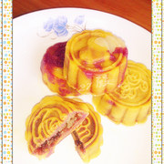面粉、转化糖浆、植物油、碱面:水、蛋液、芽菜猪肉末、紫薯沙、熟糯米粉、芝麻、花生小粒。