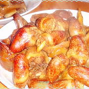 石灰包谷面、大头菜、猪肉绞、芽菜。