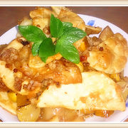 瘦猪肉末、黄油、鸡蛋、白洋葱、大蒜、面粉、红椒、青椒、豆腐。