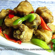 鸡腿、红辣椒、青辣椒、香菜、八角、姜、葱、盐、胡椒粉、鸡粉、色拉油、玉米淀粉、白糖、醋精、酱油、料酒。