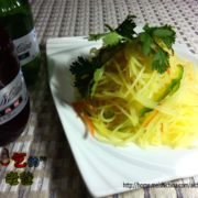 土豆、胡萝卜、青椒、盐、白糖、白醋、辣椒油。