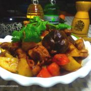 鸡腿、香菇、土豆、胡萝卜、盐、海天红烧酱油、姜、八角、葱、蒜、色拉油。