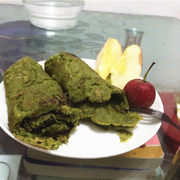 玉米粉、红薯粉、茼蒿、鸡蛋、盐、玉米油。