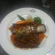 台塑牛排、西兰花、胡萝卜、黄瓜、黑椒汁。