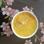 老母鸡、南瓜、大米、红萝卜、芹菜、韭葱、姜片、油、盐、鸡精。