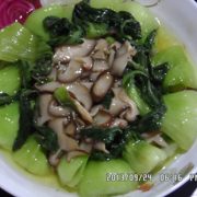 鲜香菇、油菜、调和油、盐、鸡精、香油、淀粉。