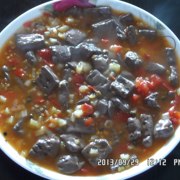 猪血、泡椒、泡姜、花椒、调和油、盐、鸡精、淀粉、大葱。