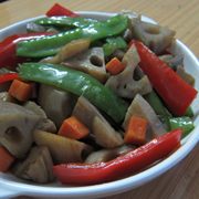 莲藕、彩椒、荷兰豆、胡萝卜。