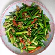 猪肉末、蒜苔、胡萝卜、食用油、水淀粉、胡萝卜、盐、醋、鸡精老抽。