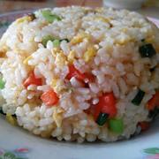 米饭、鸡蛋、胡萝卜、黄瓜、香葱、盐、鸡精、食用油。