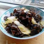 黑木耳、白菜、葱、蒜、食用油、老抽、盐、味精、醋。