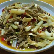 杏鲍菇、鸡蛋、大葱、盐、生抽、味精、姜丝、干辣椒筒、色拉油。