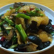 响皮、青蒜、香菇、木耳、盐、郫县豆瓣、姜丝、糖、味精、干辣椒。