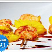 去皮大虾、菠萝罐头、竹签、香醋、白糖。