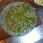 土豆、芹菜、盐、葱花、蒜、油、生抽。