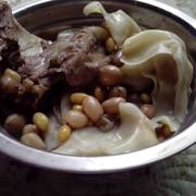 猪肉末、尾骨、花生、胡萝卜、黄豆、馄饨皮、盐、姜、葱。