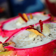 西米、火龙果、椰汁、冰糖、银耳、红枣。