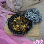 秋葵、豆腐、发菜、虾米、白果、皮蛋、姜、葱、老抽、蚝油、淀粉水、香油。