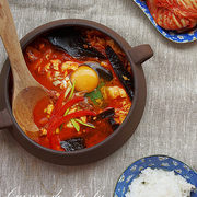 绞牛肉、绢豆腐、辣椒粉、蒜末、鸡蛋、葱、韩国辣酱、油、盐、胡椒。
