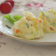 土豆、胡萝卜、洋葱、黄瓜、煮鸡蛋、橄榄油、沙拉酱、葱花、盐、胡椒粉。