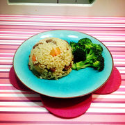 大米、肥肠、青椒、胡萝卜、洋葱、香菇、料酒、盐、鸡精、生姜末。