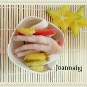 鸡脯肉、红甜椒、绿甜椒、柠檬、蚝油、生抽、鸡精、料酒。