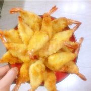 对虾、面粉、鸡蛋、面包糠、鸡精、椒盐、胡椒、盐。
