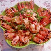 对虾、青椒、葱花、生姜、大蒜、酱油、鸡精、盐、糖、胡椒粉。