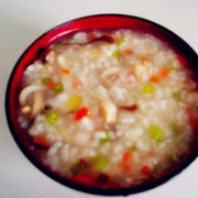 香菇、大米、胡萝卜、芹菜、鸡胸脯肉、葱丝。